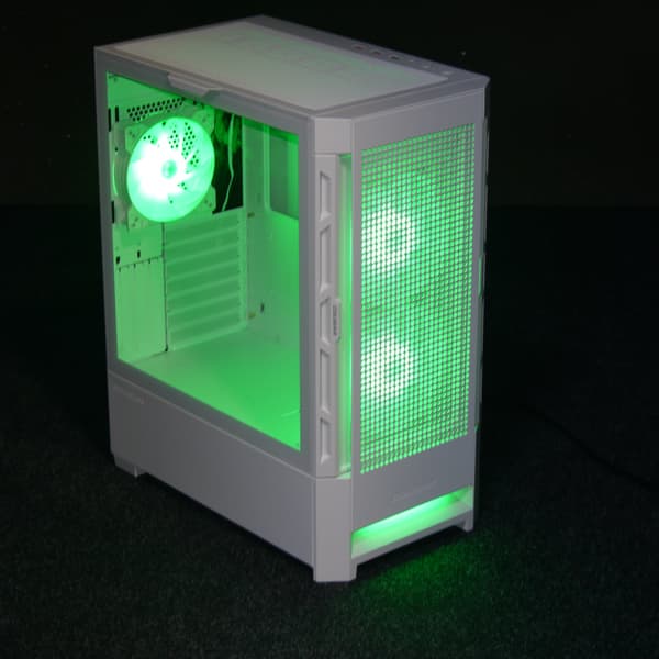 Как можно догадаться по названию, корпус оснащен полнофункциональной RGB-подсветкой. Существует два цветовых варианта: черный и белый. Также существует модификация без RGB-подсветки, которая отличается комплектом вентиляторов и представлена только в черном цвете. Металлические элементы корпуса окрашены вполне добротно — видимо, порошковой краской.