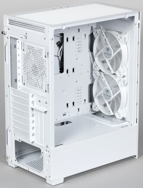 Шасси корпуса используется бюджетное, но вполне качественное, что особенно заметно при знакомстве с корпусом изнутри. Заметны усилия, направленные как на увеличение жесткости конструкции путем использования деталей специальной формы, так и на увеличение удобства при сборке. За счет особенностей конструкции жесткость корпуса на скручивание можно считать если и не высокой, то вполне приличной, особенно у собранной системы. Этому сильно способствуют частично несъемная левая стенка и ее стеклянная панель, а также относительно небольшая глубина шасси корпуса.