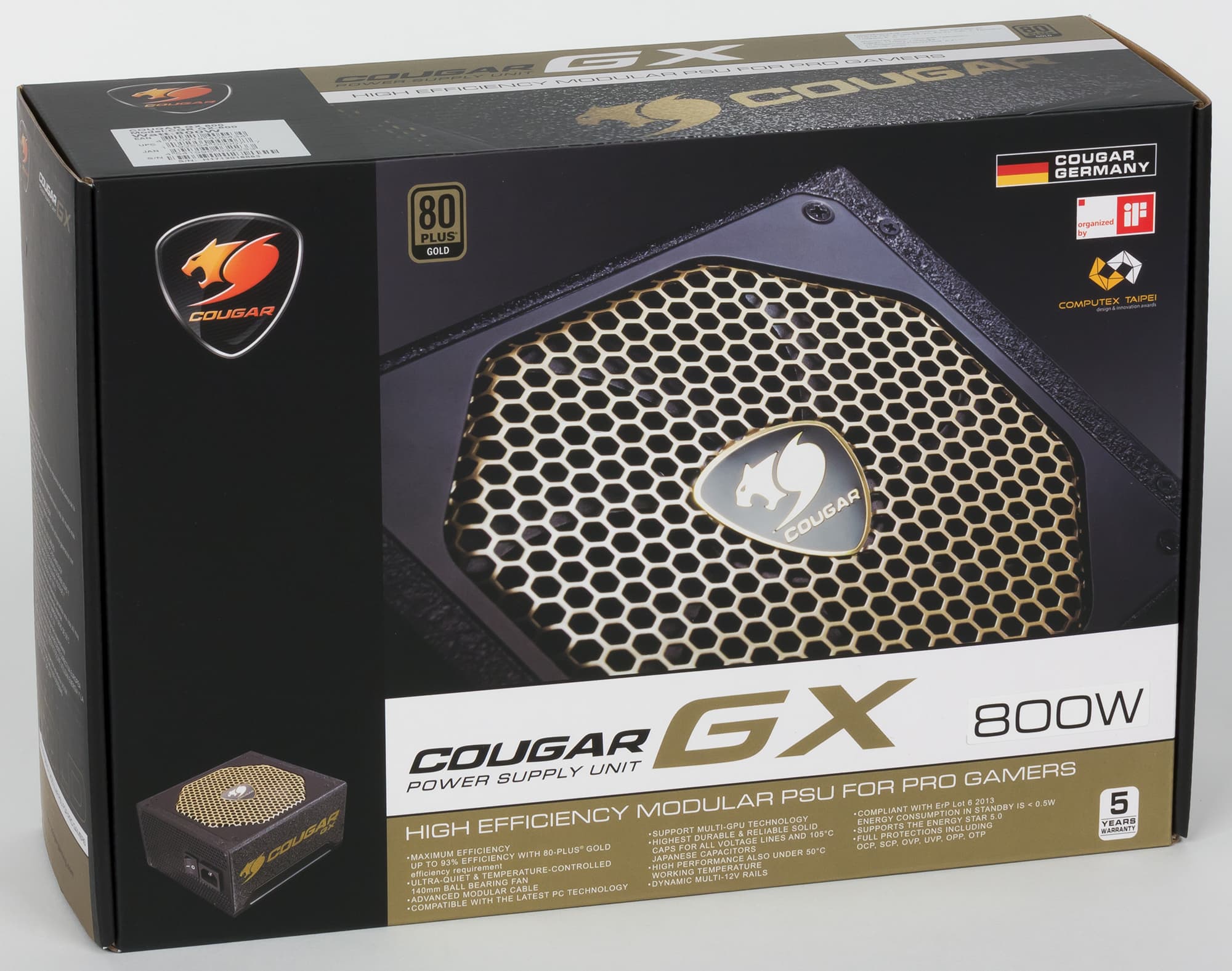 В ассортименте блоков питания, выпускаемых под торговой маркой Cougar, представлены девять серий, которые разделены на три группы: 80Plus Gold, 80Plus Bronze и 80Plus. К группе 80Plus Gold относятся серии GX-F, GX и GX-S. С одним из представителей серии GX-S мы уже познакомились в одном из предыдущих обзоров, а сегодня у нас на очереди старшая серия GX. В серии GX есть три модели мощностью 600, 800 и 1050 Вт. Позиционируется данная серия для игровых систем. Для тестирования нам была предоставлена модель мощностью 800 Вт — GX800 (CGR GX-800).