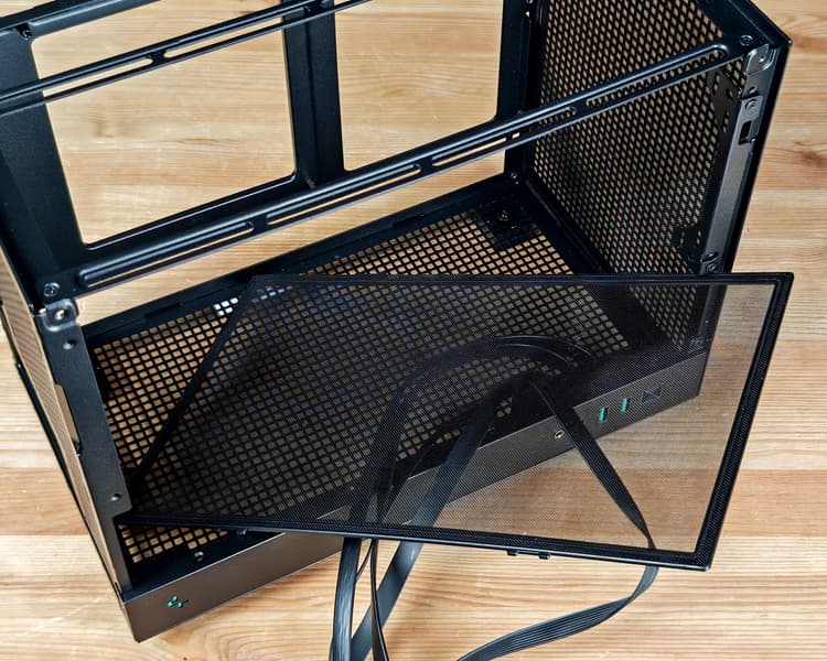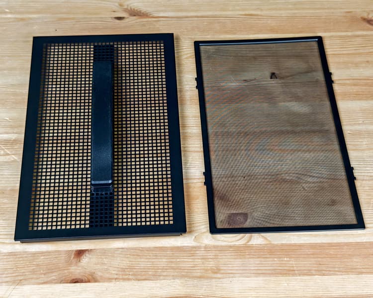 Однако в продаже можно встретить предназначенную для этих корпусов пылезащитную сетку в виде листа гибкого пластика с мелкими отверстиями, которая крепится с помощью расположенных по периметру магнитов (подобные фильтры часто встречаются в корпусах), причем доступны оба цвета — черный и белый. В DeepCool CH160 Mesh она может использоваться совместно с левой металлической стенкой, а в CH160 вместо стеклянной стенки, то есть и для этого варианта корпуса боковое расположение вентиляторов или радиатора СЖО не исключается, хотя и ценой компромисса по внешнему виду: если судить по доступным фото, получается не очень красиво, однако можно купить и поставить перфорированную стенку DeepCool Air Panel 100.