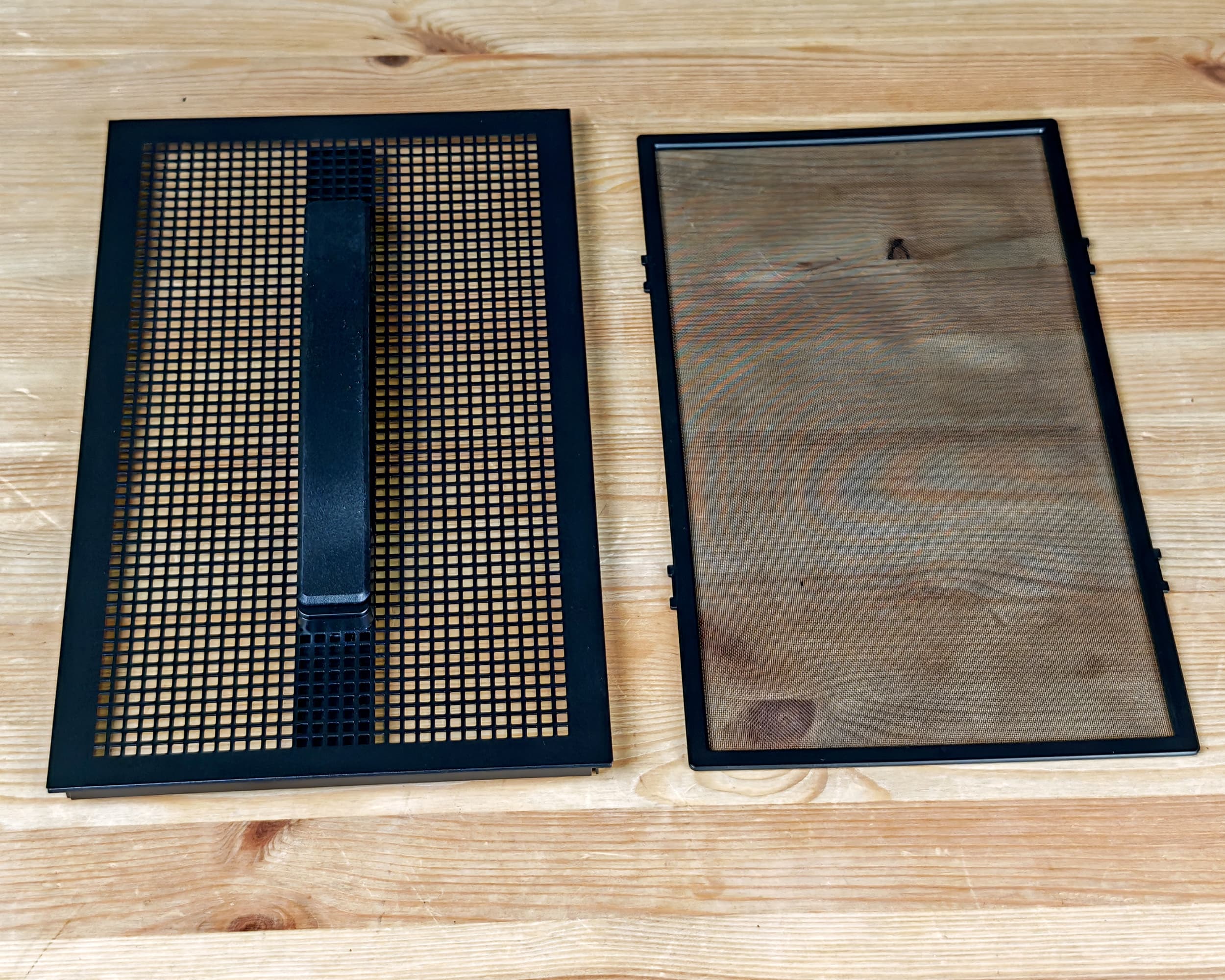 На известной китайской интернет-площадке предлагается и другое решение — сетки разного размера и цвета для самостоятельного изготовления фильтра; мы нашли вариант 50×30 см, которого хватит и на левый бок корпуса, и на перфорированную область правой крышки, надо лишь аккуратно отрезать по размеру и прикрепить по краям самоклеящуюся магнитную ленту, рулончик которой прилагается. Дарим идею обладателям любых корпусов, в которых не все места с отверстиями имеют защиту от пыли.