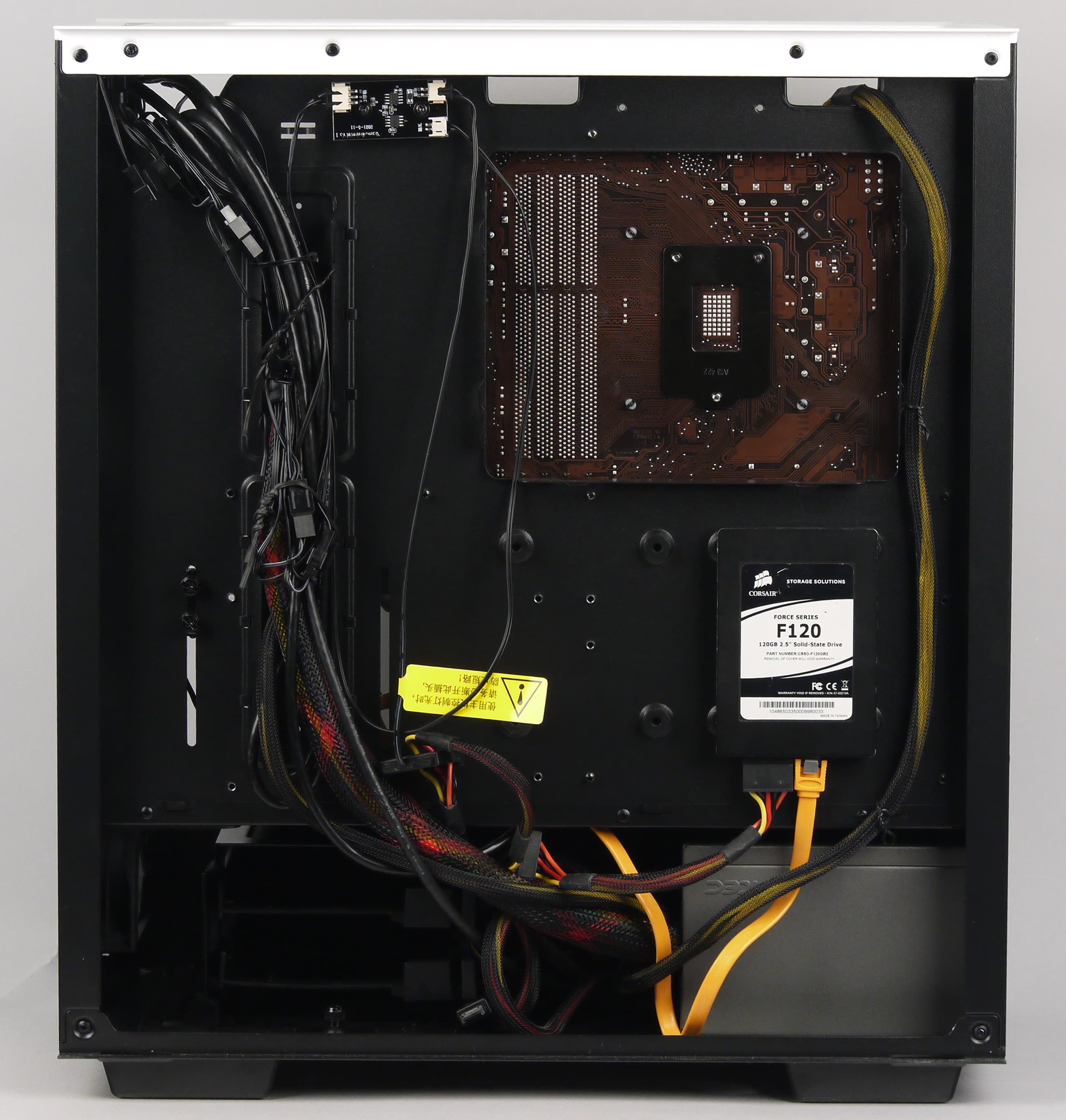 Порядок сборки ПК в данном корпусе особого значения не имеет, так как компоненты разнесены и не мешают друг другу, но лучше начать с установки блока питания и прокладки проводов.