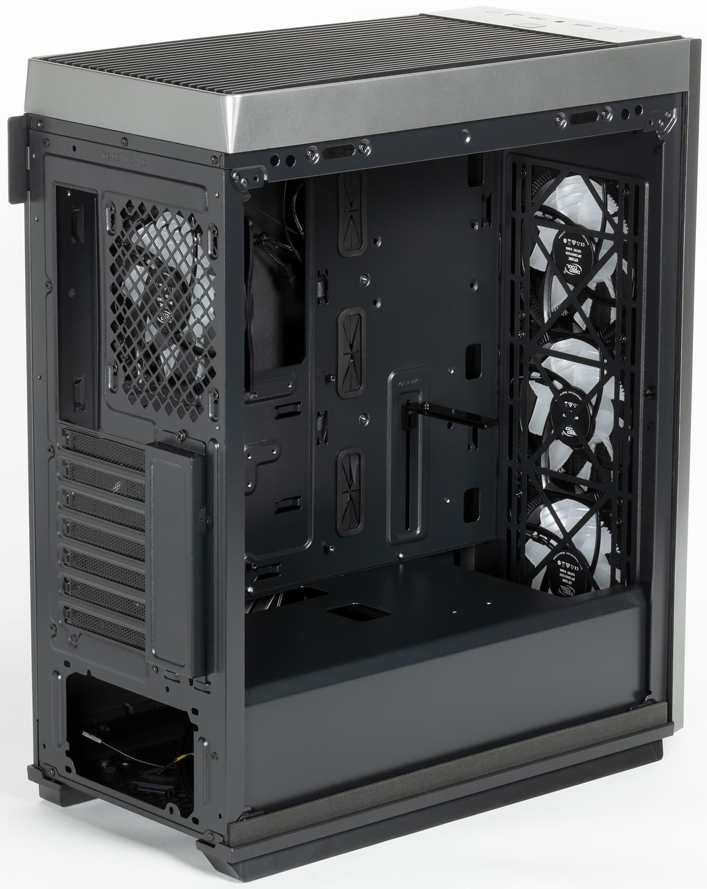 В корпусе предустановлены четыре вентилятора типоразмера 120 мм (1100 об/мин): три спереди и один сзади.