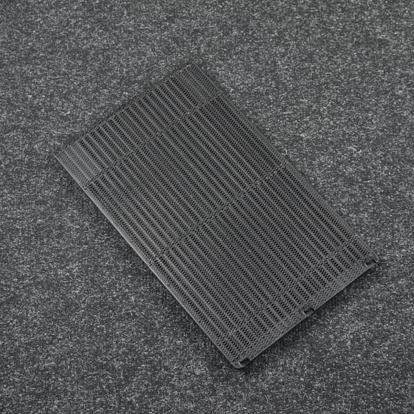 Фильтр под блоком питания выполнен из крупноячеистой сетки, которая представляет собой проштампованный лист пластика с круглыми отверстиями. Рамки он не имеет. И если снять его на ощупь еще как-то можно, то поставить обратно уже затруднительно.