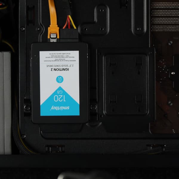 Полноразмерные жесткие диски устанавливаются в предназначенную для них двухместную корзину.