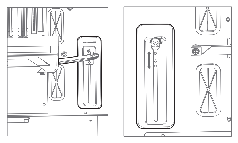 Еще одно оригинальное решение — подстраиваемый кронштейн для длинных видеокарт. Он имеет достаточно простую конструкцию. Согнутая вдвое стальная полоса, поддерживающая видеокарту, закреплена на перемещающемся уголке при помощи подпружиненной петли. Уголок можно зафиксировать в нужном месте при помощи винта с обратной стороны основания для системной платы.