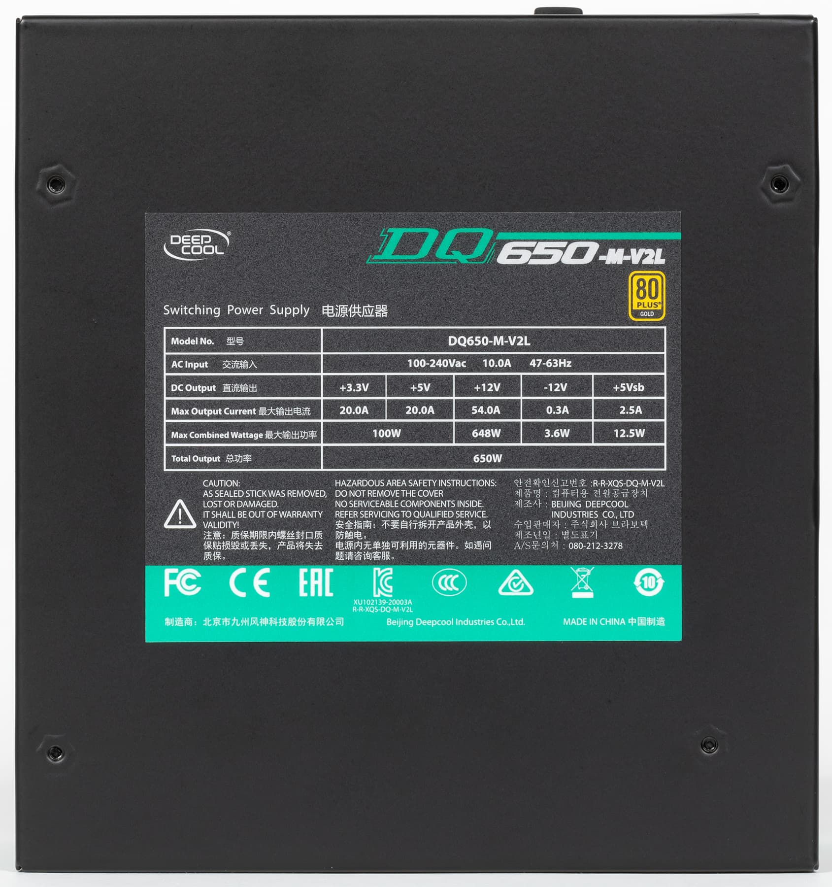Компания Deepcool обновила свою серию блоков питания DQ, выпустив несколько моделей с суффиксом M-V2L — нам удалось обнаружить на сайте компании три таких БП: с мощностью 650, 750 и 850 Вт. Все модели данной группы характеризуются использованием японских конденсаторов, а также наличием сертификата 80Plus Gold. Мы протестируем младшую модель на 650 Вт: Deepcool DQ650-M-V2L.