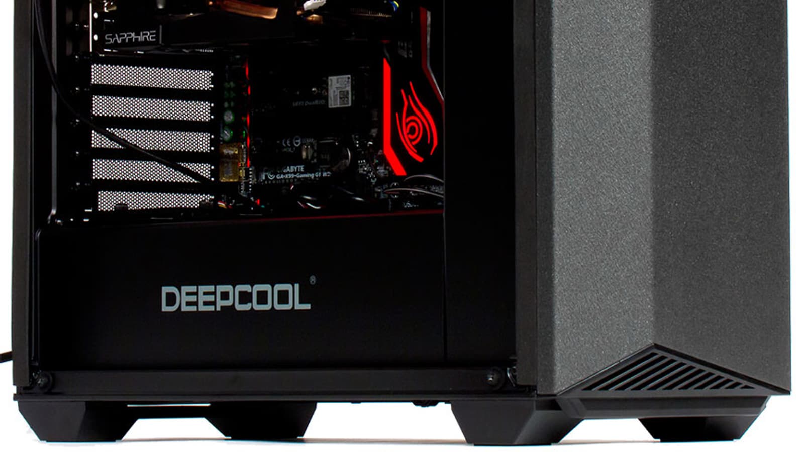 Ну а сегодня перед нами корпус с гораздо более демократичным ценником, его предлагает компания Deepcool под названием Earlkase. На официальном сайте обозначены две модели, но это всего лишь цветовые вариации — черная, которая и досталась нам, а также белая (целиком, лишь левая стеклянная стенка имеет темную тонировку, как и у черного варианта).