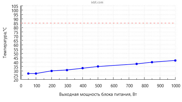 Таким образом, с точки зрения акустической эргономики данная модель обеспечивает комфорт при выходной мощности в пределах 850 Вт, а при мощности нагрузки менее 400 Вт блок питания работает действительно тихо.