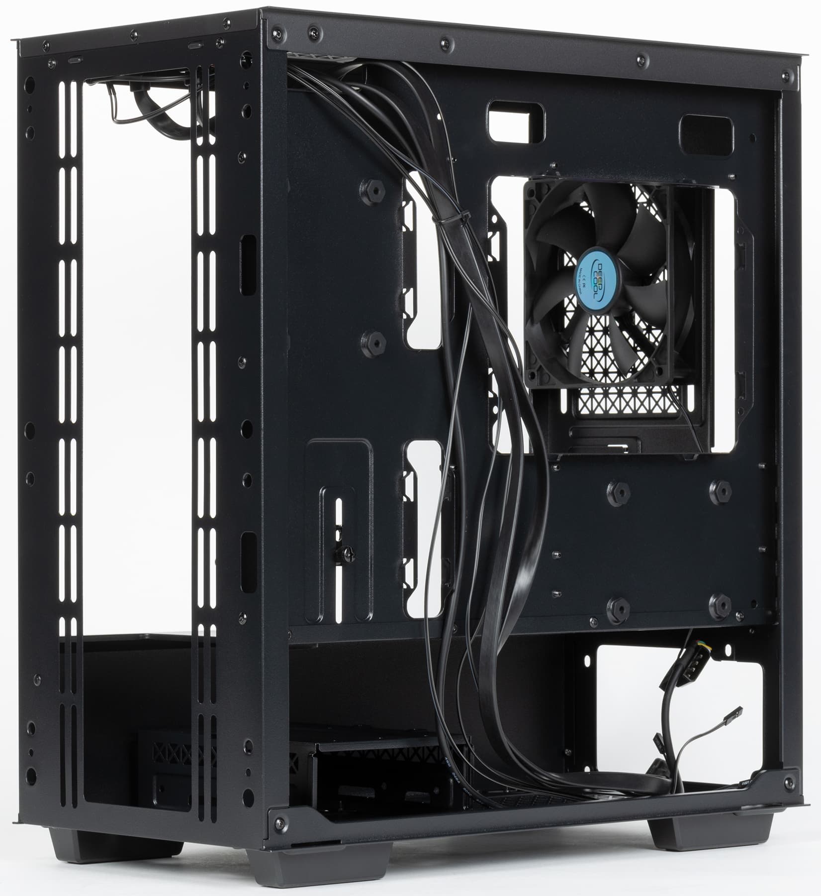 Собирать систему в корпусе достаточно удобно, так как свободного места внутри сравнительно много, что позволит разместить довольно габаритные компоненты. Правда, ставить сюда топовые компоненты не совсем целесообразно, поскольку корпус все-таки довольно компактный, да и штатная система охлаждения на этот вариант не очень рассчитана (хотя есть возможность установить еще несколько вентиляторов, а также СВО 280 мм, и это должно улучшить ситуацию). А вот для игровой системы средней ценовой категории корпус вполне подойдет. Наилучшие свои качества Deepcool Macube 110 сможет продемонстрировать при сборке систем на компонентах со средним или невысоким тепловыделением, к которым нужно иметь оперативный доступ, так как магнитная система крепления позволяет быстро снять стенку и погрузиться в недра системного блока.