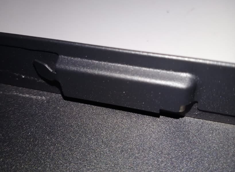 Снизу левая стенка имеет зацеп, который надевается на борт шасси. Удобно, что стенку можно устанавливать и на корпус, находящийся в вертикальном положении. Крепежные магниты вмонтированы в борт шасси, то есть вставлены между двух завальцованных частей борта.