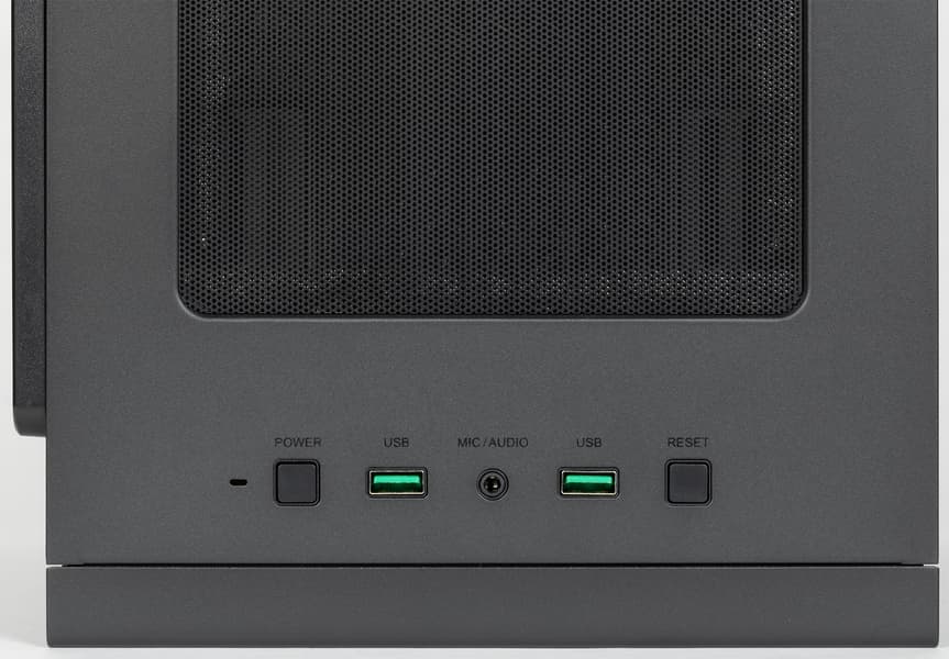 Корпус Deepcool Macube 110 выглядит довольно элегантно, но вместе с тем утилитарно. Тут нет особой воздушности, но и никаких аляповатых элементов и тяжеловесных конструкций также не наблюдается. Достигается это использованием прямых граней со всех сторон корпуса, а также минимумом пластиковых деталей во внешнем оформлении. Внешняя часть передней панели стальная за исключением вентиляционных решеток по бокам.