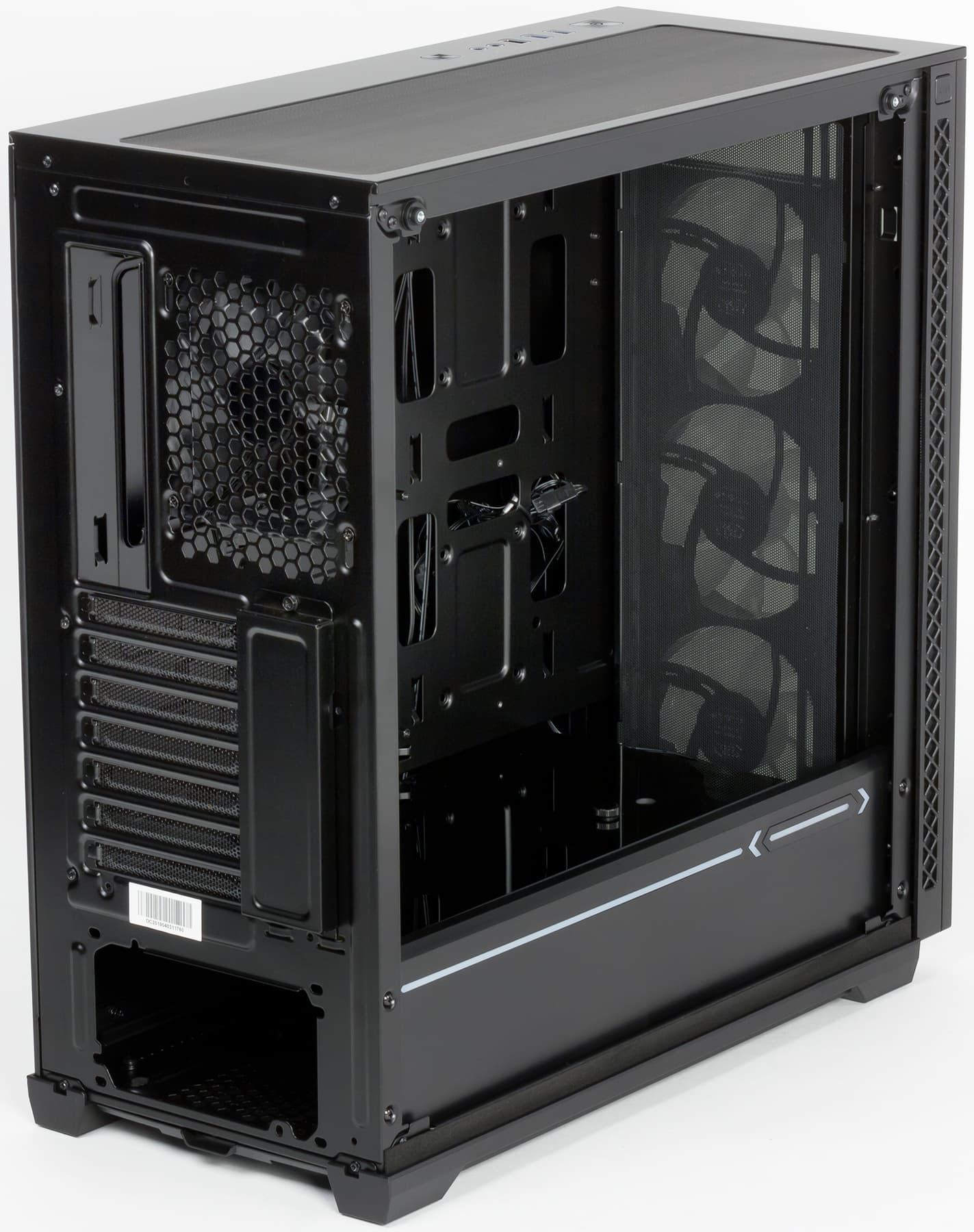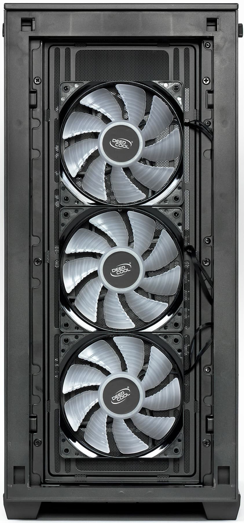 В корпусе предусмотрена возможность установки вентиляторов типоразмера 120 или 140 мм. Посадочные места для них имеются спереди, сверху и сзади.