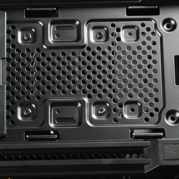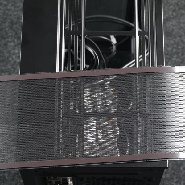 Верхняя стенка у корпуса весьма оригинальная. Если снять фильтр, то перед нами предстает просто монтажная панель для установки компонентов системы охлаждения.