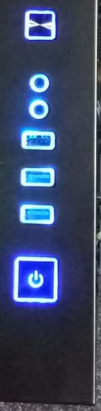 Порты ввода-вывода расположены на верхней панели и представлены минимальным набором: два порта USB 3.0, один порт USB 2.0 и два аудиоразъема (для наушников и микрофона). Расстояние между портами USB такое, что позволяет использовать как минимум пару широких устройств. Также тут присутствуют кнопка включения с опоясывающим индикатором питания и кнопка управления подсветкой с опоясывающим индикатором активности накопителей. Разъемы тут также имеют подсветку голубого цвета, причем работает она и в дежурном режиме.