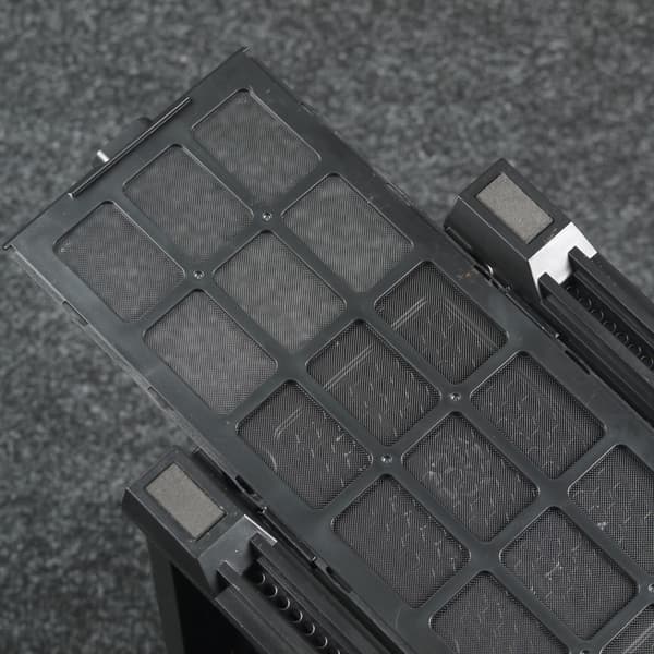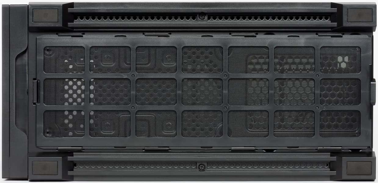 Фильтр для верхней стенки удобнее всего снимается и ставится на место благодаря магнитной окантовке, однако выполнен он из достаточно крупной пластиковой сетки, а потому большая часть мелких пылинок просочится сквозь него в корпус. С другой стороны, он отлично поможет от падения внутрь корпуса монет, ключей, каких-либо мелких предметов, да и от части пыли тоже спасет.