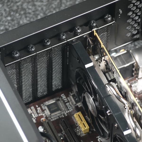 Система фиксации тут самая обычная — крепление на винтах снаружи корпуса с индивидуальной фиксацией и общей декоративной накладкой, которая фиксируется одним винтом под крестовую отвертку. Все заглушки для плат расширения съемные, фиксируются одним винтом с накатной головкой.
