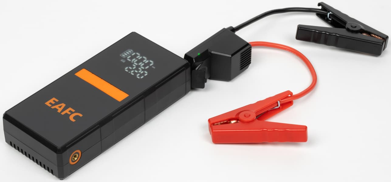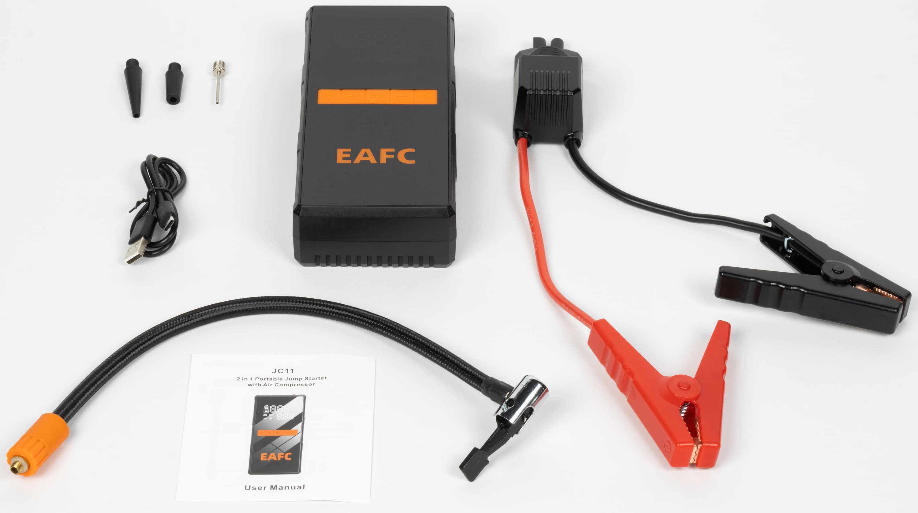 Сейчас нам достался его аналог гораздо менее известного китайского бренда — EAFC JC11. Помимо различных бустеров, под маркой EAFC также предлагаются различные аксессуары для автомобилей: зарядные устройства для АКБ, инверторы для преобразования бортсети в переменное напряжение 220 вольт, компрессоры для шин и мойки высокого давления.