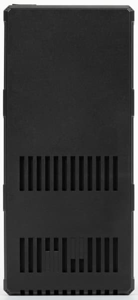 На одном из коротких торцов расположены различные разъемы — двухконтактная розетка силового выхода, прикрытая резиновой заглушкой, а также выход USB-A и вход USB-C, там же находится очень яркий белый светодиод фонарика.