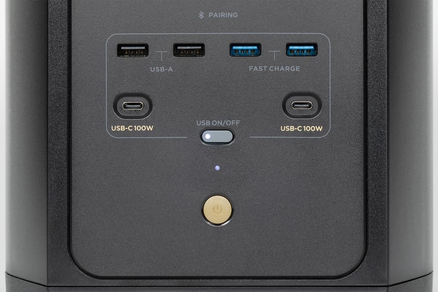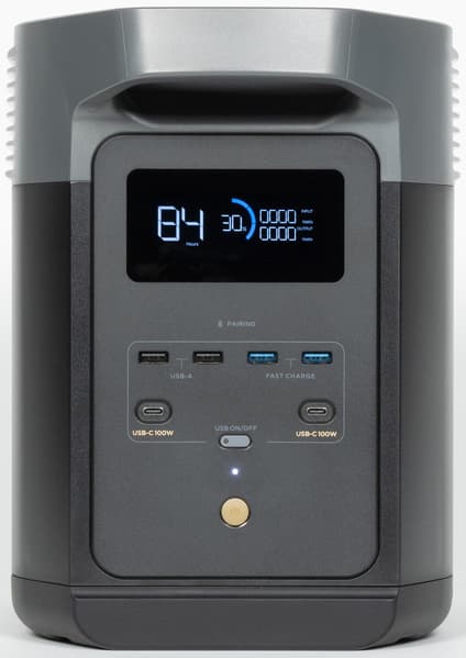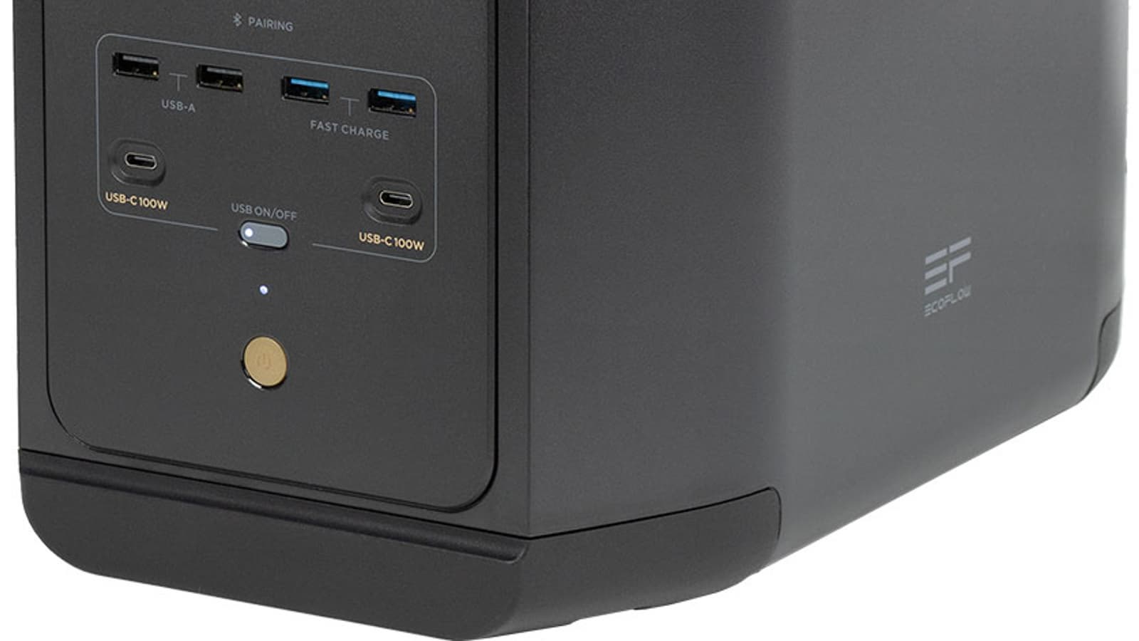 EcoFlow Delta 2 — богатейшее по функциональности устройство батарейного питания: у него есть выходы переменного тока, порты USB-A и Type-C с поддержкой современных технологий и режимов заряда мобильных устройств, гнездо автомобильного прикуривателя и разъемы под штырьковый коннектор с напряжением 12 В.