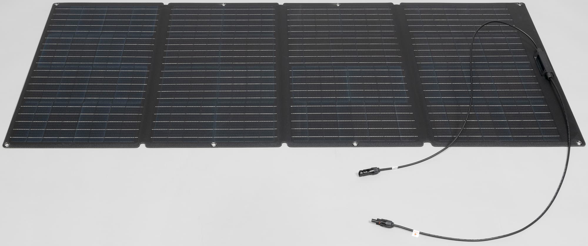Наконец, последний вариант заряда — от солнечных панелей. Одну такую панель нам предоставили (см. выше), но она оснащена весьма специфическими разъемами, а соединительный кабель, который приобретается отдельно, с ней так и не дали, поэтому опробование не получилось.