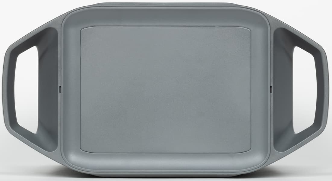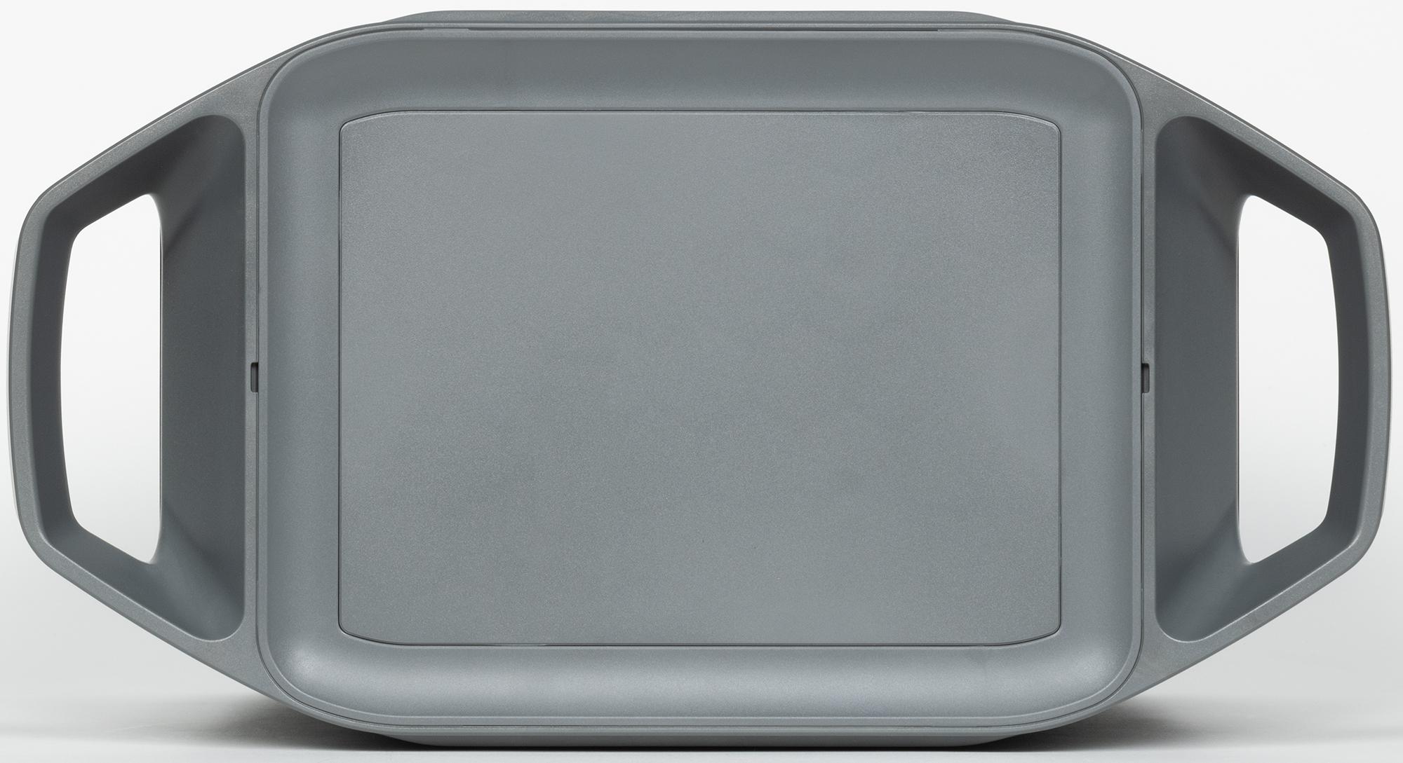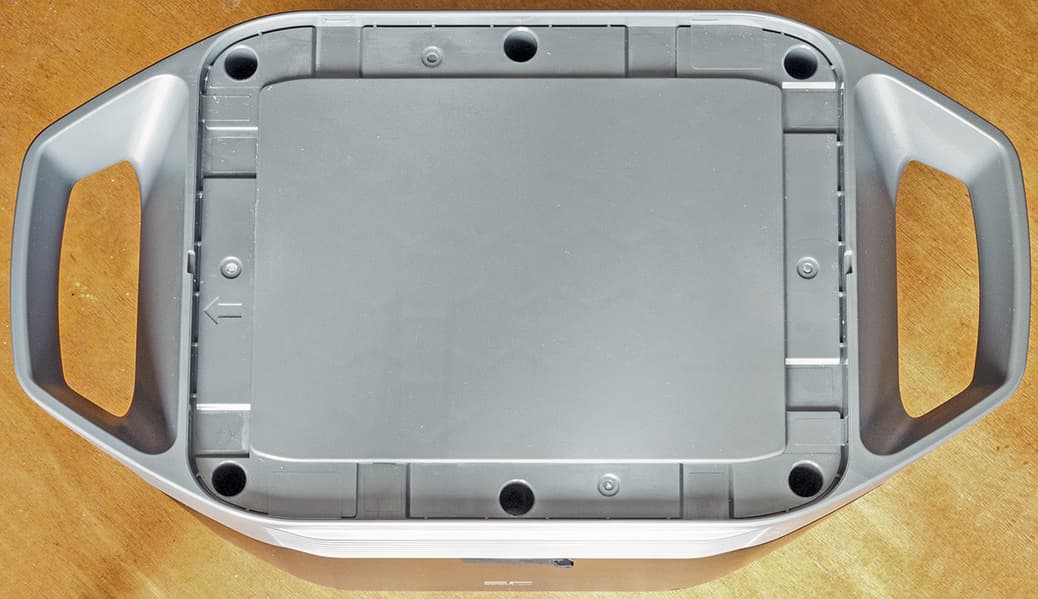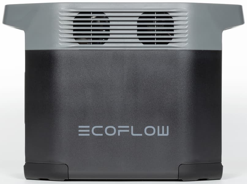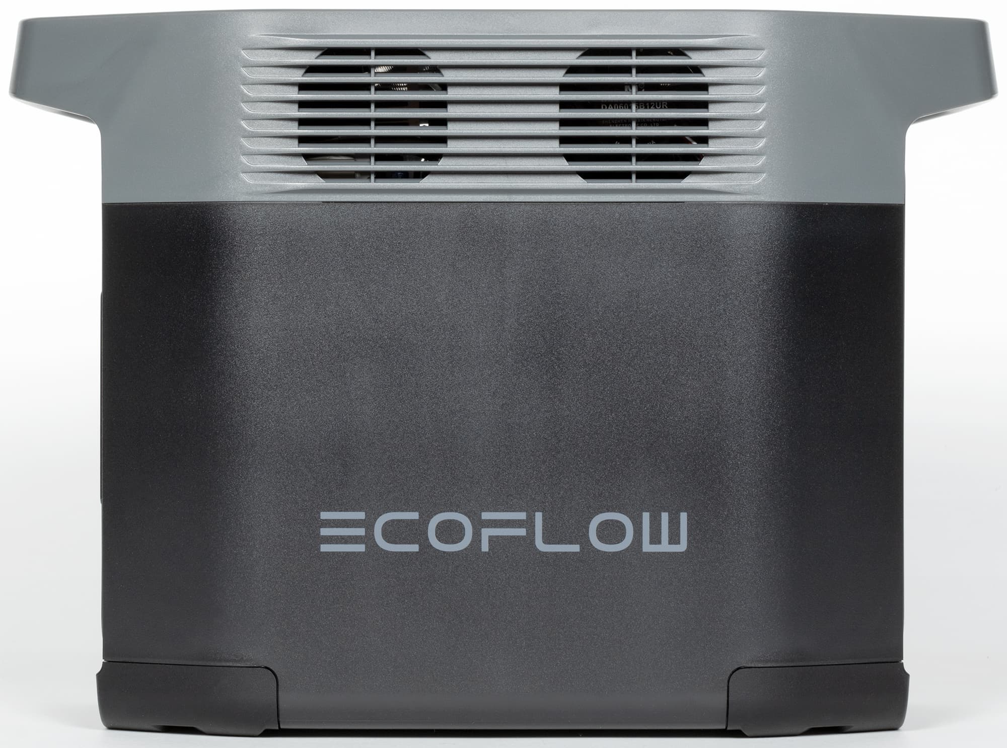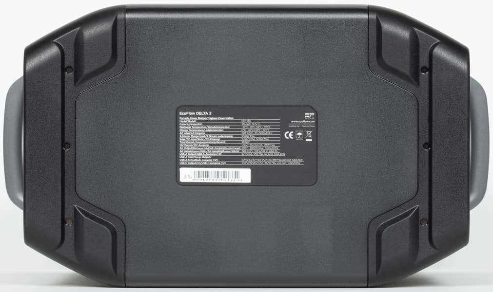 Внешне EcoFlow Delta 2 напоминает тумбочку с двумя выступающими в стороны ручками вверху. Корпус сделан из прочного пластика двух цветов: серого в верхней четверти и черного в остальной части, все поверхности матовые.