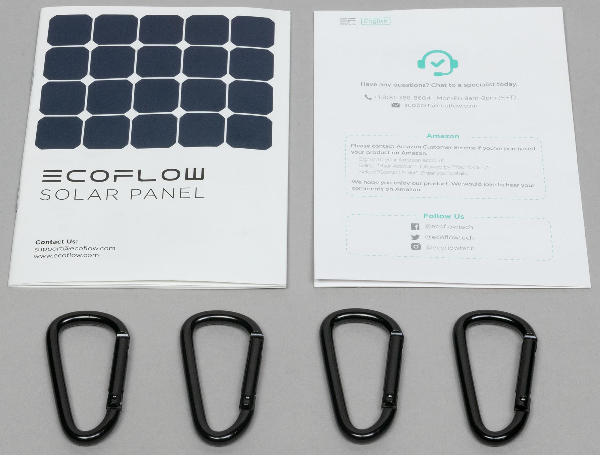 В комплекте кабели для подключения к сети переменного тока (длина 1,35 м, сечение проводов 3х1,0 мм², то есть соответствует заявленному максимальному входному току) и к автомобильному прикуривателю (длина та же, сечение тоже обозначено — 14AWG или 2 мм²), оба снабжены лентами-липучками для закрепления в свернутом состоянии, а также кабель с штырьковыми разъемами DC5521 и DC5525 для соединения нагрузок с 12-вольтовым выходом (длина 0,9 м, сечение 22AWG или 0,33 мм²). Есть и набор печатной документации.