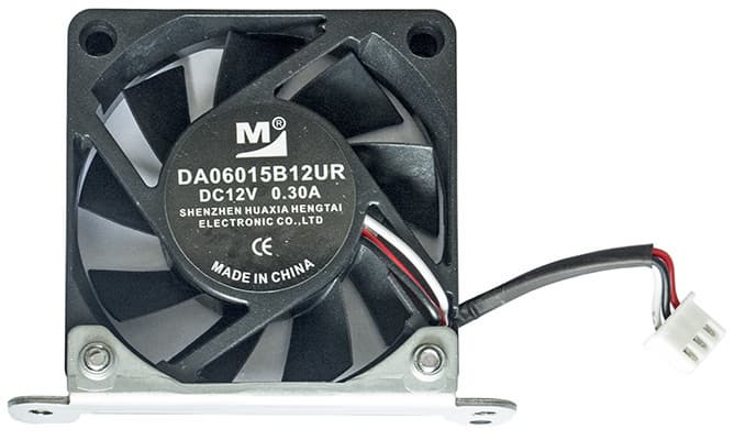 Становятся видны основная плата с электроникой и три вентилятора, их размеры 60×60×15 мм (12 В / 0,3 А), два правых установлены как нагнетающие, единственный левый вытяжной.
