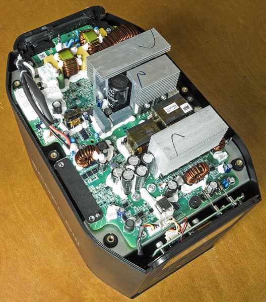 Силовые компоненты оснащены ребристыми алюминиевыми радиаторами. Коммутации осуществляются тремя электромеханическими реле.