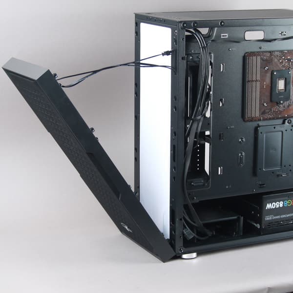 Способ крепления боковых стенок описан выше, осталось только сказать, что снимать и устанавливать их на место немного неудобно — приходится придерживать (особенно левую стеклянную), иначе могут выпасть из посадочного места. Но это скорее примечание для сборщика, чем реальная проблема, хотя определенное неудобство это доставляет.