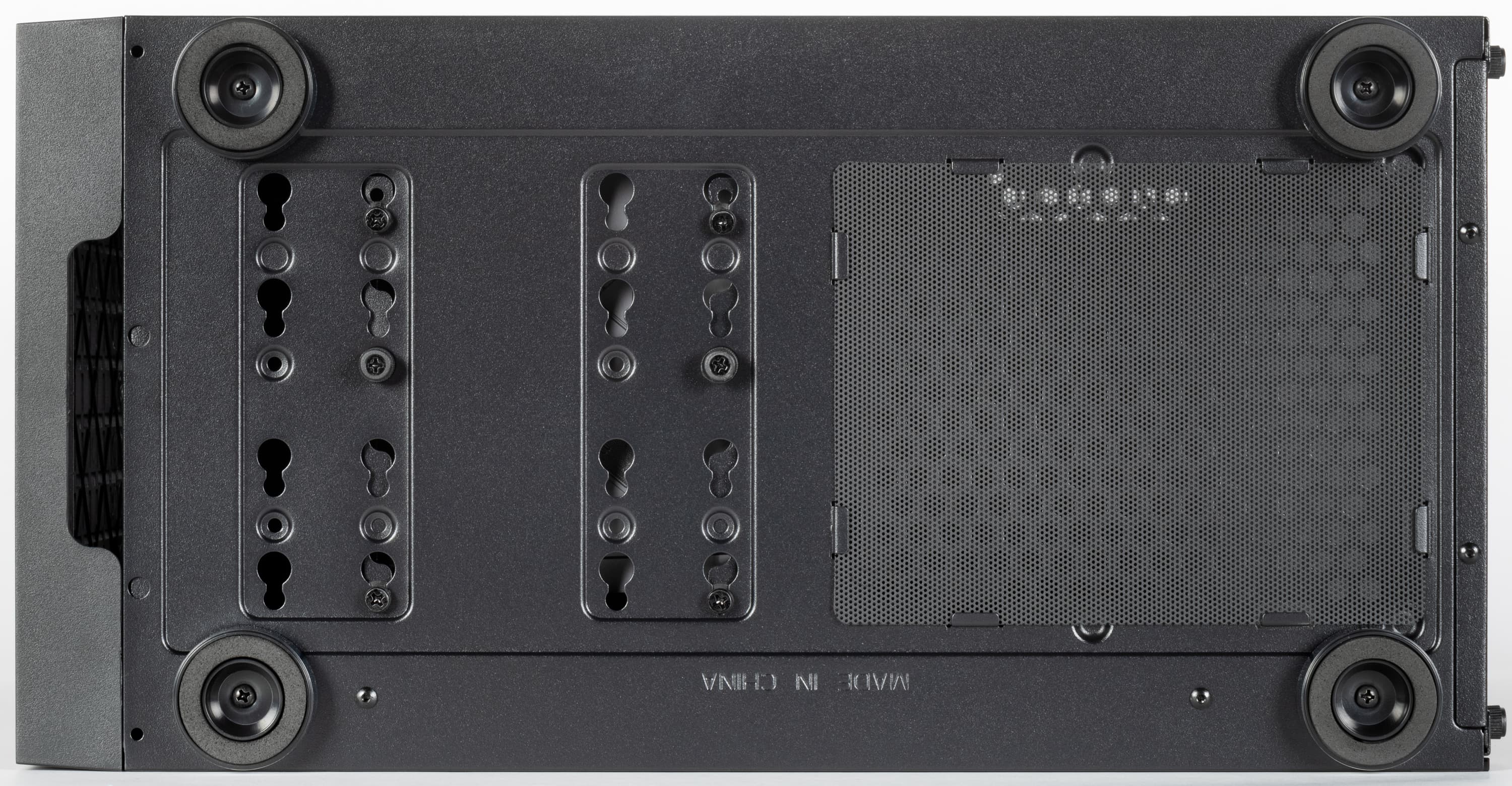Единственного штатного вентилятора будет достаточно для многих возможных конфигураций, а если сборщик сочтет необходимым, то сможет добавить до пяти дополнительных или установить радиаторы СЖО впереди и/или вверху. Предусмотрены три фильтра — на верхней и фронтальной поверхностях шасси, а также на днище в месте установки блока питания.