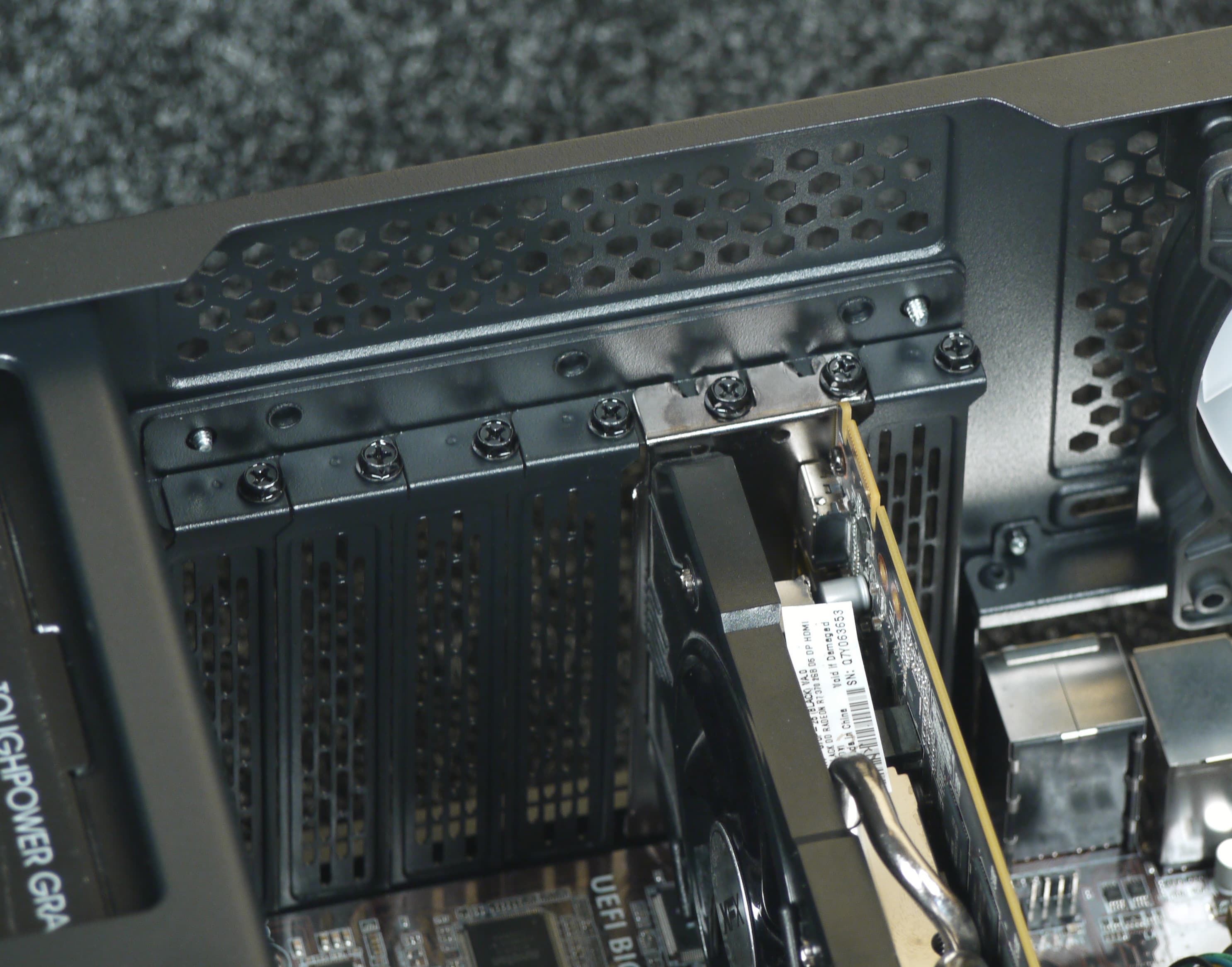 Для видеокарт в данном корпусе возможен единственный способ установки — горизонтальный (непосредственно в слот расширения системной платы).