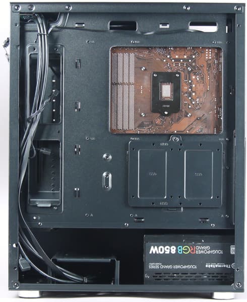 Между основанием для системной платы и правой боковой стенкой остается около 19 мм, чего вполне достаточно для прокладки кабелей. Для их аккуратного монтажа предусмотрены штампованные «ушки», а в комплекте есть пять одноразовых стяжек.