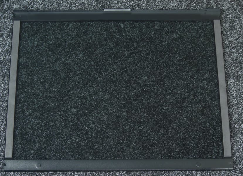 Предусмотрены фильтры, наиболее удобно обслуживать верхний — это лист из черного гибкого пластика с мелкими круглыми отверстиями, который удерживается на металле верхней плоскости шасси с помощью закрепленных по всему периметру магнитных полос.