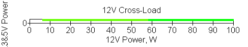 Блок питания позволяет обеспечивать нагрузку с общим потреблением не менее 400 Вт по каналу +12VDC. При дальнейшем росте потребления по каналу +12VDC увеличивается отклонение напряжения по каналу +5VDC.
