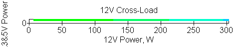 КНХ позволяет нам определить, какой уровень нагрузки можно считать допустимым, особенно по каналу +12VDC, для тестируемого экземпляра. В данном случае отклонения действующих значений напряжения от номинала по каналу +12VDC составляют 1% от номинала. При типичном распределении мощности по каналам отклонения от номинала не превышают 1% по каналам +3.3VDC и +12VDC и 2% по каналу +5VDC.