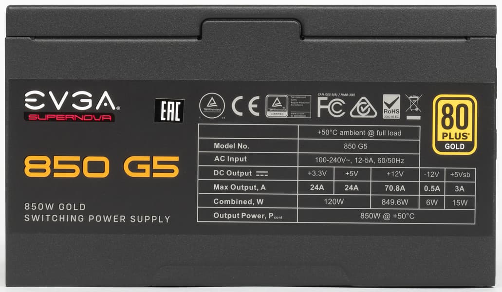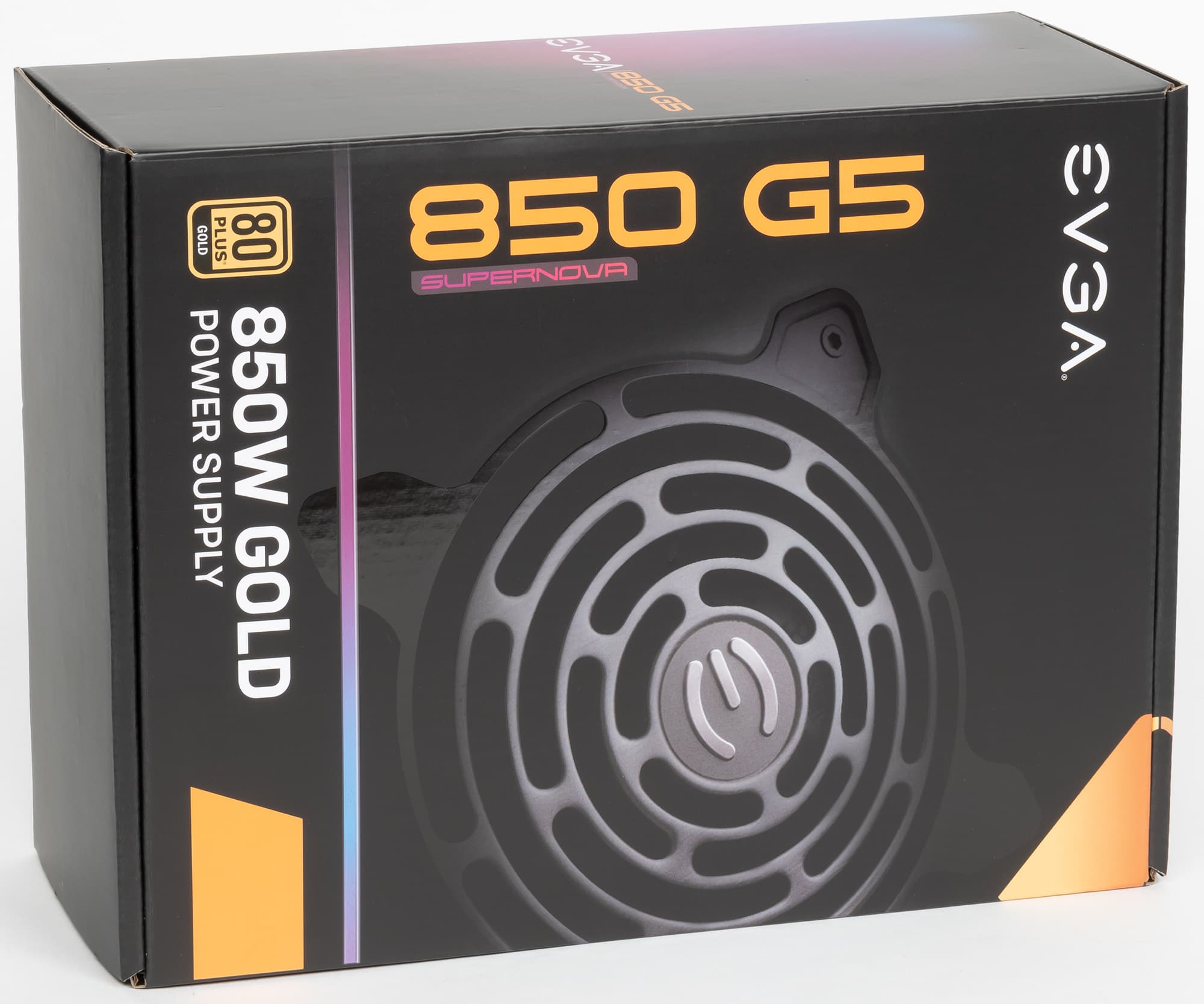Нам был предоставлен на тесты блок питания EVGA Supernova 850 G5, заявленная максимальная выходная мощность которого составляет 850 Вт, а розничная цена в России на момент публикации обзора — около 10 тысяч рублей.