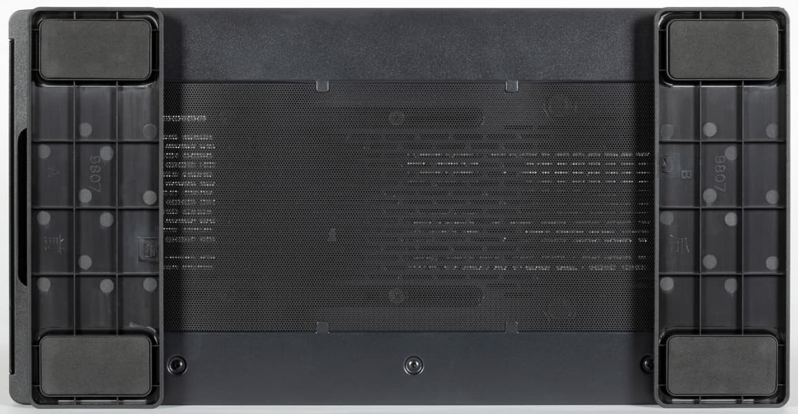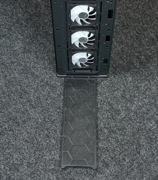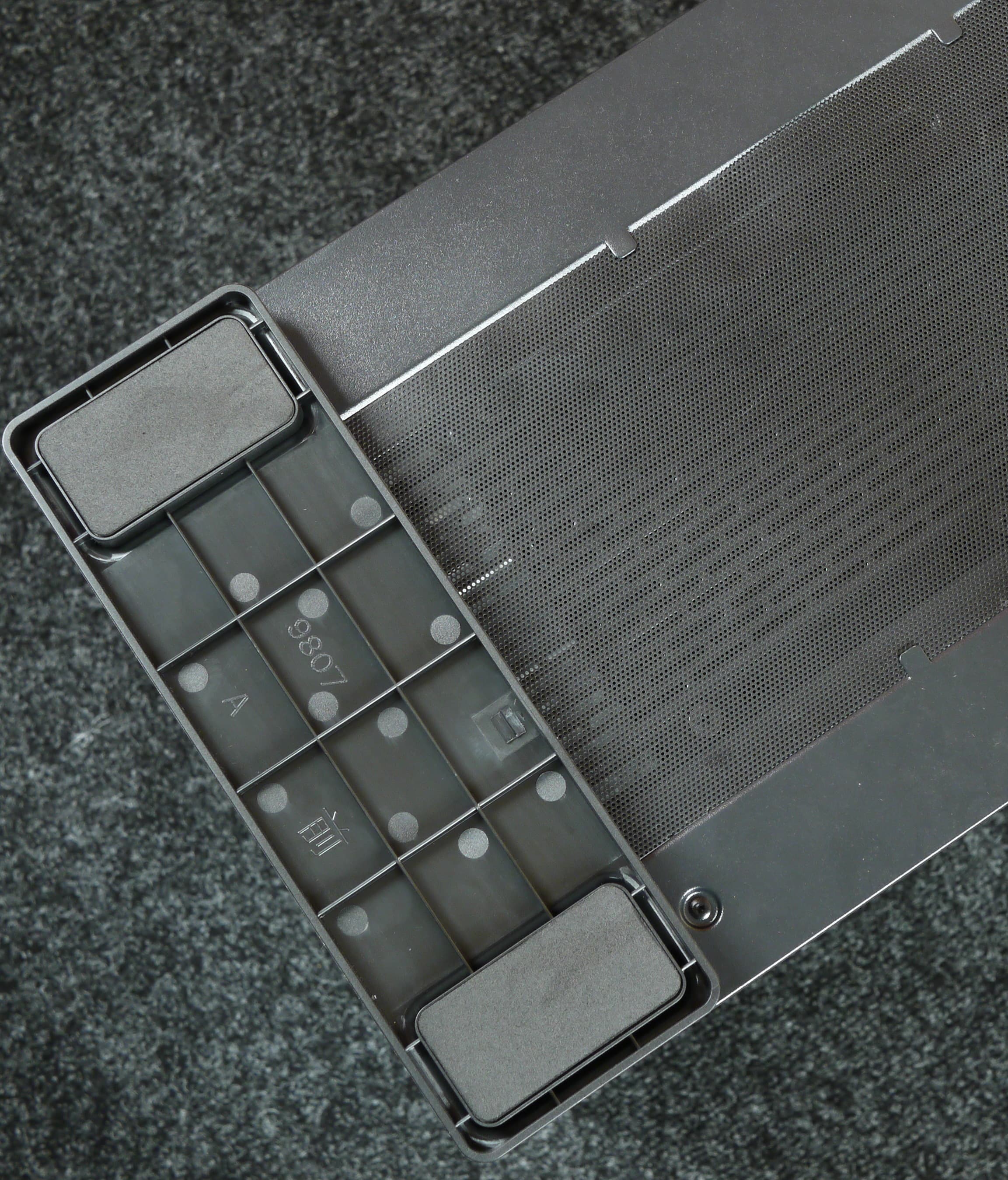 Свои пять копеек добавляют ножки корпуса, которые частично перекрывают место установки нижнего фильтра. Тут однозначно нужно было реализовывать какой-то другой вариант — например, фильтр на рамке, который задвигается спереди или сзади по направляющим. Ну, или просто сделать «как у всех»: отверстие и фильтр только в районе блока питания.