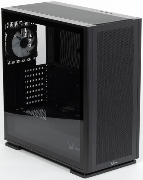 С виду это вполне типовой черный параллелепипед с левой стеклянной панелью, на сайте производителя заявлен также белый вариант оформления. При более близком знакомстве выясняется, что в корпусе установлены 4 вентилятора с подсветкой, управляемые штатным контроллером, а также имеются быстро- и небыстросъемные противопылевые фильтры. Корпус потяжелее и покрупнее, чем можно было ожидать, выглядит более солидно, чем типовые бюджетные решения.