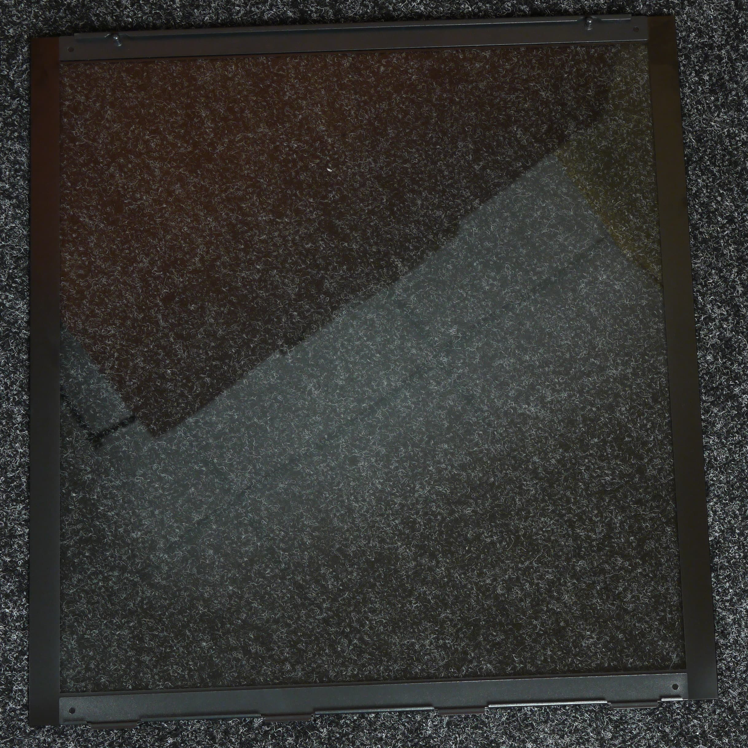 Стенка из закаленного стекла фиксируется при помощи сферических распорных элементов сверху и зацепов снизу. Для извлечения ее нужно отклонить вбок, преодолев усилие распорных элементов. Для удобного выполнения данной операции на задней стенке имеется выштамповка, позволяющая упереться пальцем в стенку. Подобное техническое решение является вполне удачным.