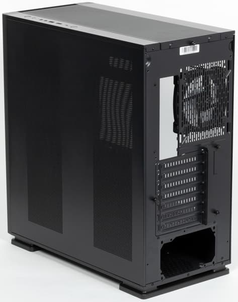 Корпус представляет собой решение башенного типа с вертикально размещаемой платой формата E-ATX (и менее габаритной) и горизонтальным расположением блока питания снизу. Можно установить полноразмерную материнскую плату длиной до 330 мм, что в бюджетных корпусах встречается крайне редко.