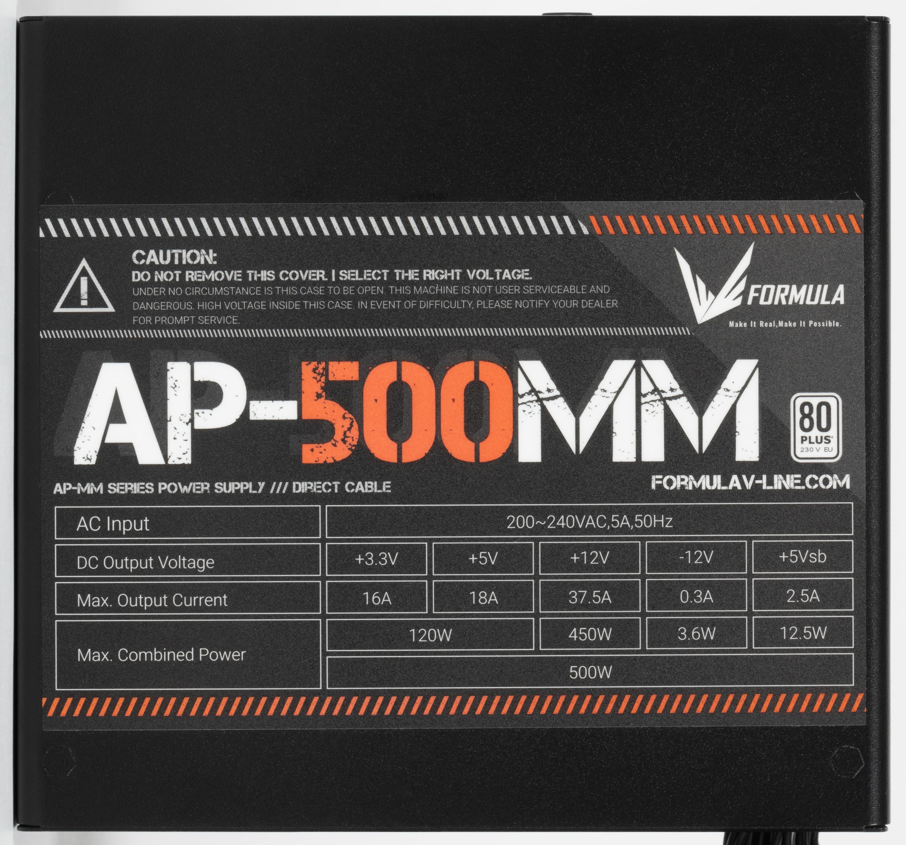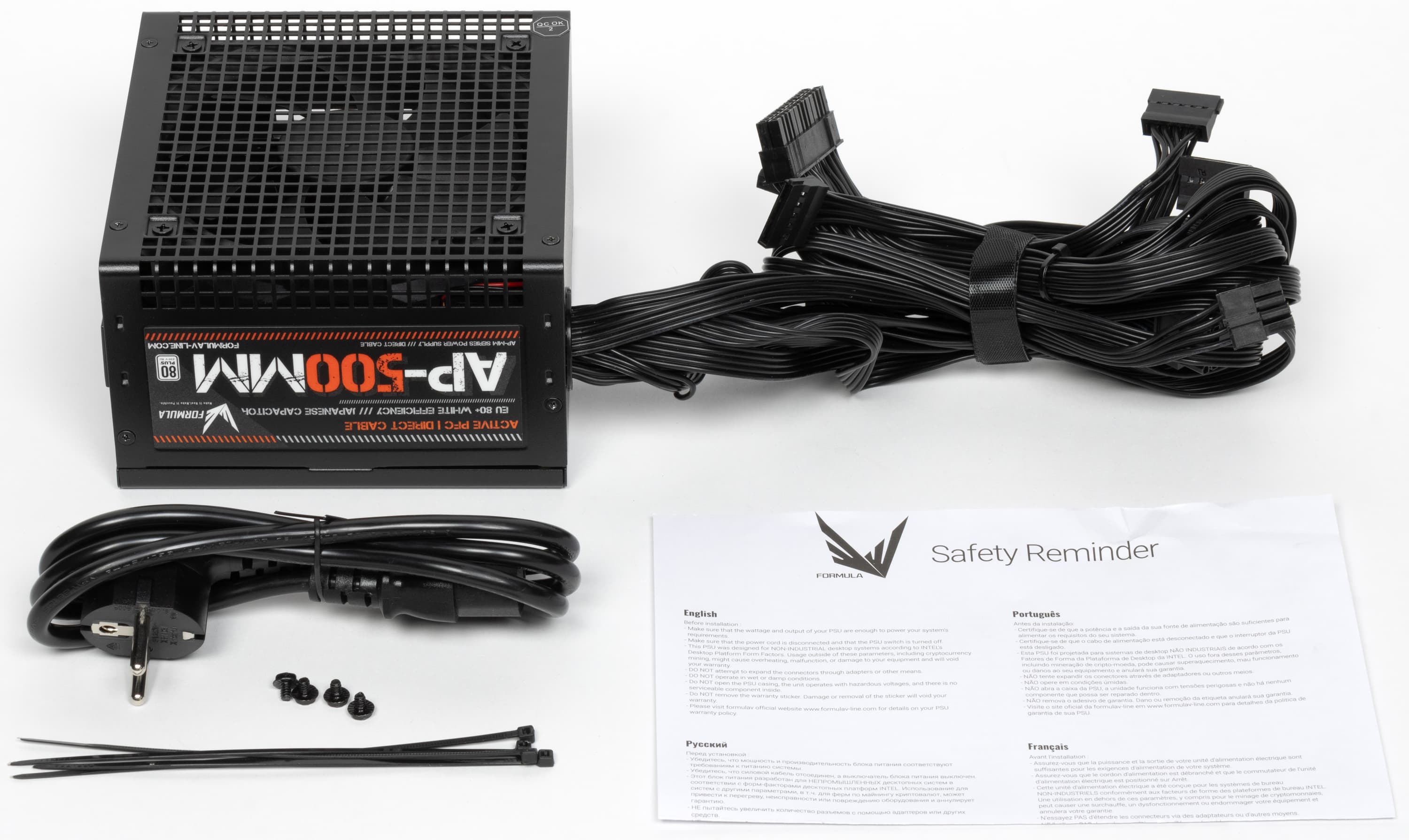 Мы продолжаем серию материалов, посвященных источникам питания с минимальной розничной стоимостью, и на этот раз познакомимся с блоком питания Formula AP-500MM. Всего в этой серии у производителя аж восемь моделей с мощностью от 400 до 750 Вт. На момент публикации обзора стоимость этого БП начиналась от 3 тысяч рублей.