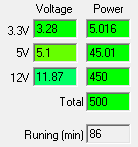 С другой стороны, иногда нужно объективно оценить экономичность компьютерного блока питания. Под экономичностью мы подразумеваем потерю мощности при преобразовании электроэнергии и ее передаче к конечным потребителям. И для оценки этого КПД не нужен, так как можно использовать не отношение двух величин, а абсолютные значения: рассеиваемую мощность (разницу между значениями на входе и выходе блока питания), а также потребление энергии источником питания за определенное время (день, месяц, год и т. д.) при работе с постоянной нагрузкой (мощностью). Это позволяет легко увидеть реальную разницу в потреблении электроэнергии конкретными моделями БП и при необходимости рассчитать экономическую выгоду от использования более дорогих источников питания.