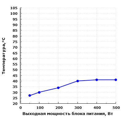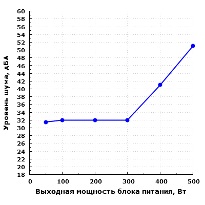 При дальнейшем увеличении выходной мощности уровень шума блока питания заметно повышается.
