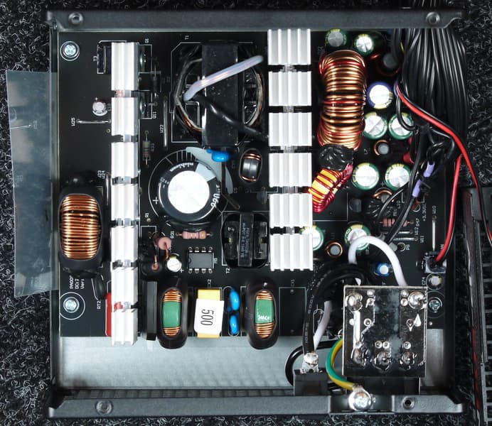 Платформа тут явно не самая передовая: реализована групповая стабилизация каналов +5VDC и +12VDC, а также +3.3VDC на отдельном стабилизаторе на базе магнитного усилителя. Впрочем, это вполне типично для решений нижней части бюджетного сегмента.