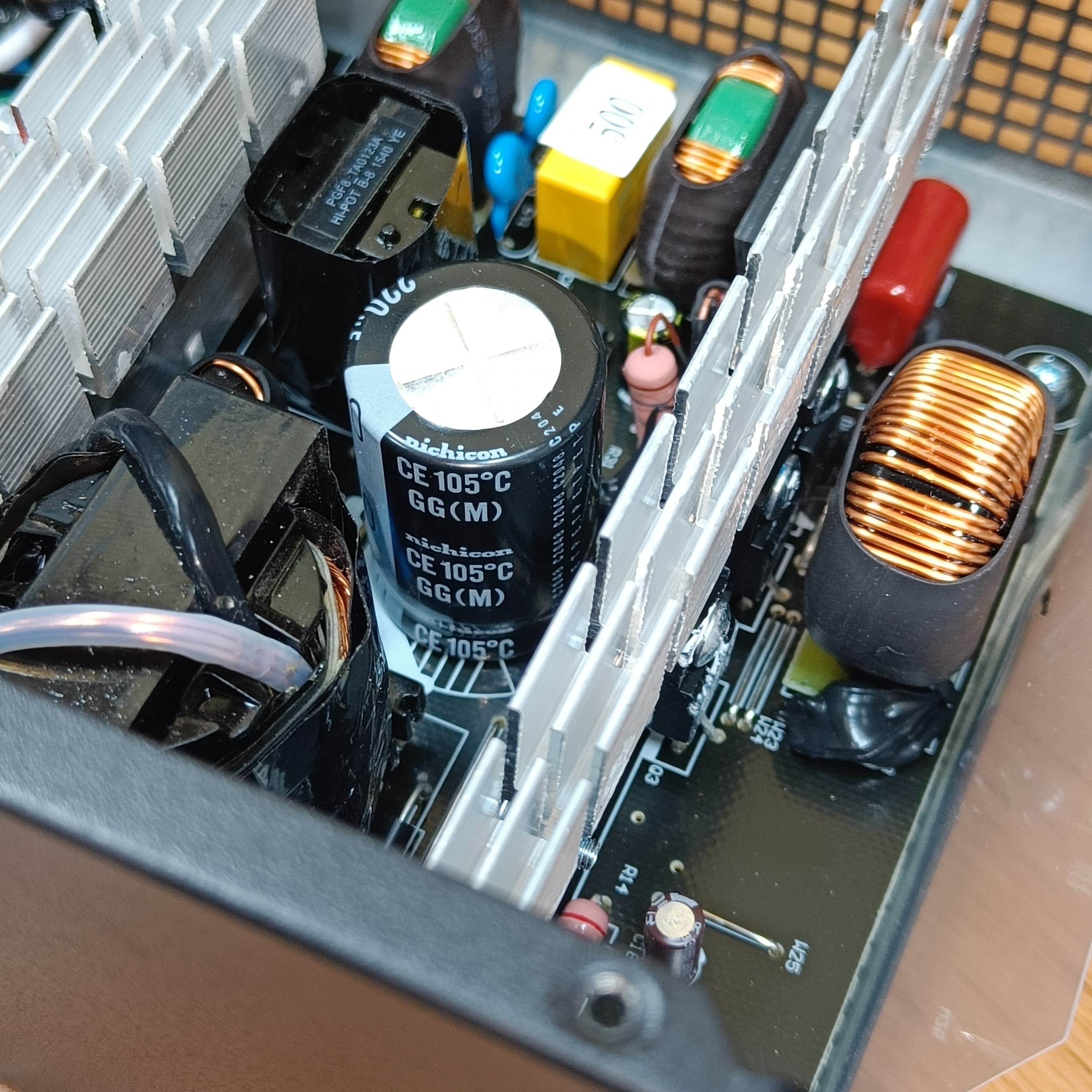 Также мы оцениваем уровень шума электроники блока питания, поскольку в некоторых случаях она является источником нежелательных призвуков. Данный этап тестирования осуществляется путем определения разницы между уровнем шума в нашей лаборатории с включенным блоком питания и с выключенным. В случае, если полученное значение находится в пределах 5 дБА, никаких отклонений в акустических свойствах БП нет. При разнице более 10 дБА, как правило, есть определенные дефекты, которые можно услышать с расстояния около полуметра. На данном этапе измерений микрофон шумомера располагается на расстоянии около 40 мм от верхней плоскости БП, так как на бо́льших расстояниях измерение шума электроники весьма затруднительно. Измерение производится в двух режимах: дежурном режиме (STB, или Stand by) и при работающем на нагрузку БП, но с принудительно остановленным вентилятором.