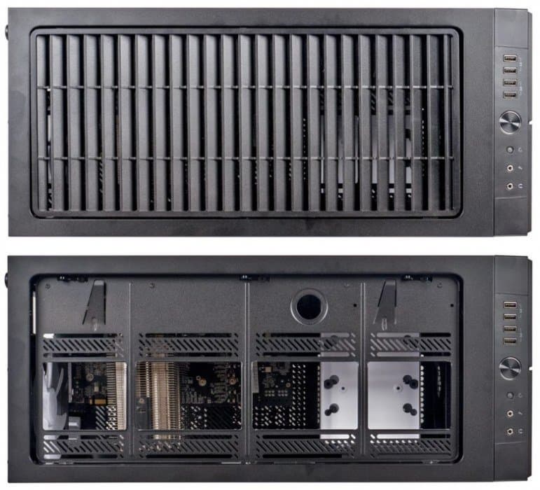 Дальше понятно: если конфигурация компьютера не требует таких мер для отвода тепла, как установка наверху дополнительных вентиляторов или радиаторов, то можно снизить уровень шума, задействовав обе части люка.