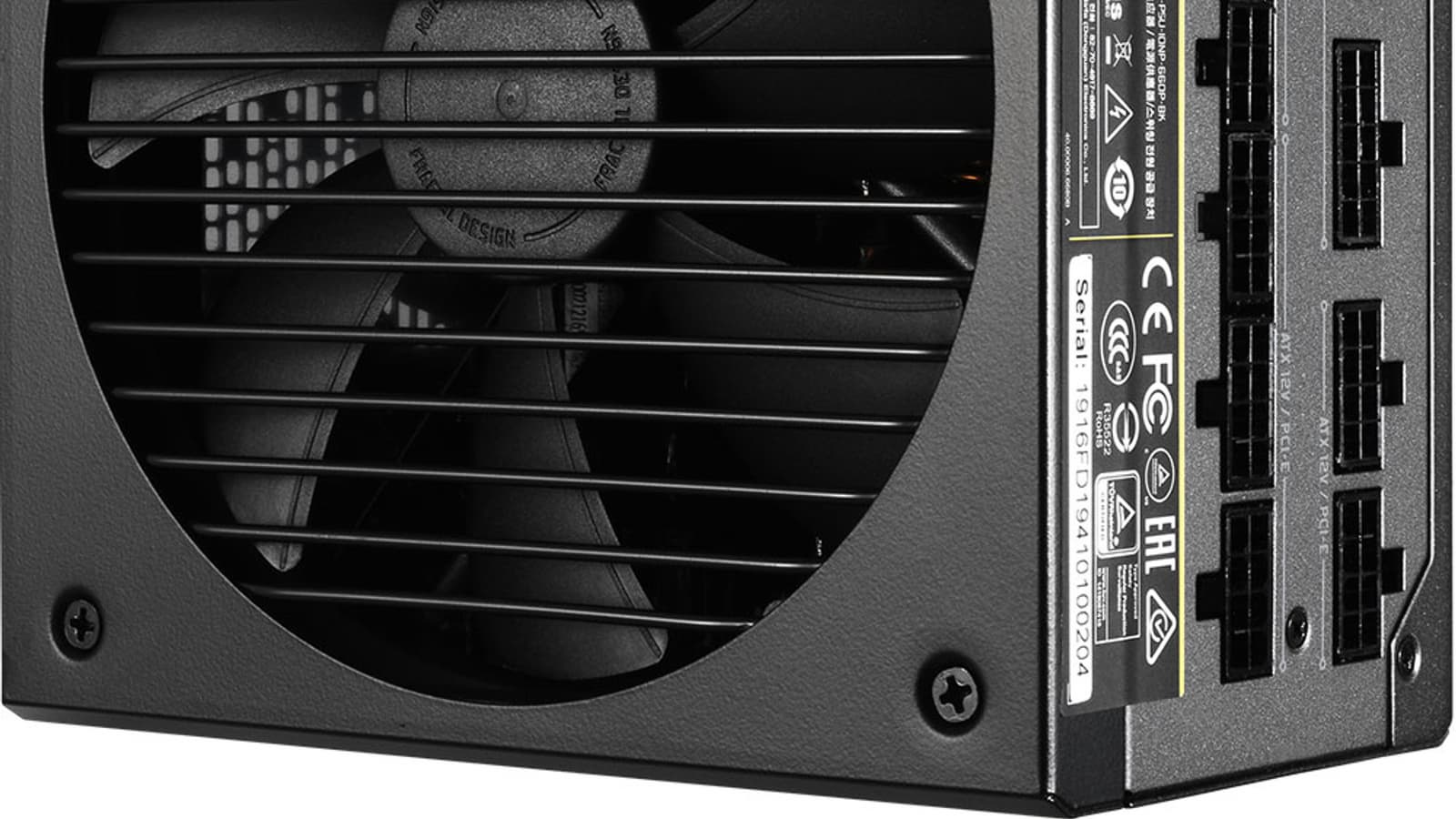 Блок питания оснащен активным корректором коэффициента мощности и имеет расширенный диапазон питающих напряжений от 100 до 240 вольт. Это обеспечивает устойчивость к понижению напряжения в электросети ниже нормативных значений.