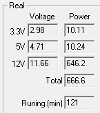 При типичном распределении мощности по каналам отклонения от номинала не превышают 4% по каналам +5VDC и +12VDC. Отклонения по каналу +3.3VDC превышают 5%.