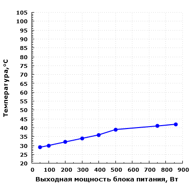 При работе в диапазоне от 750 до 860 Вт шум можно считать средним для жилого помещения в дневное время суток. Подобный уровень шума вполне приемлем при работе за компьютером. Кроме того, нагрузка, имеющая подобную мощность, вряд ли окажется тише данного источника питания.